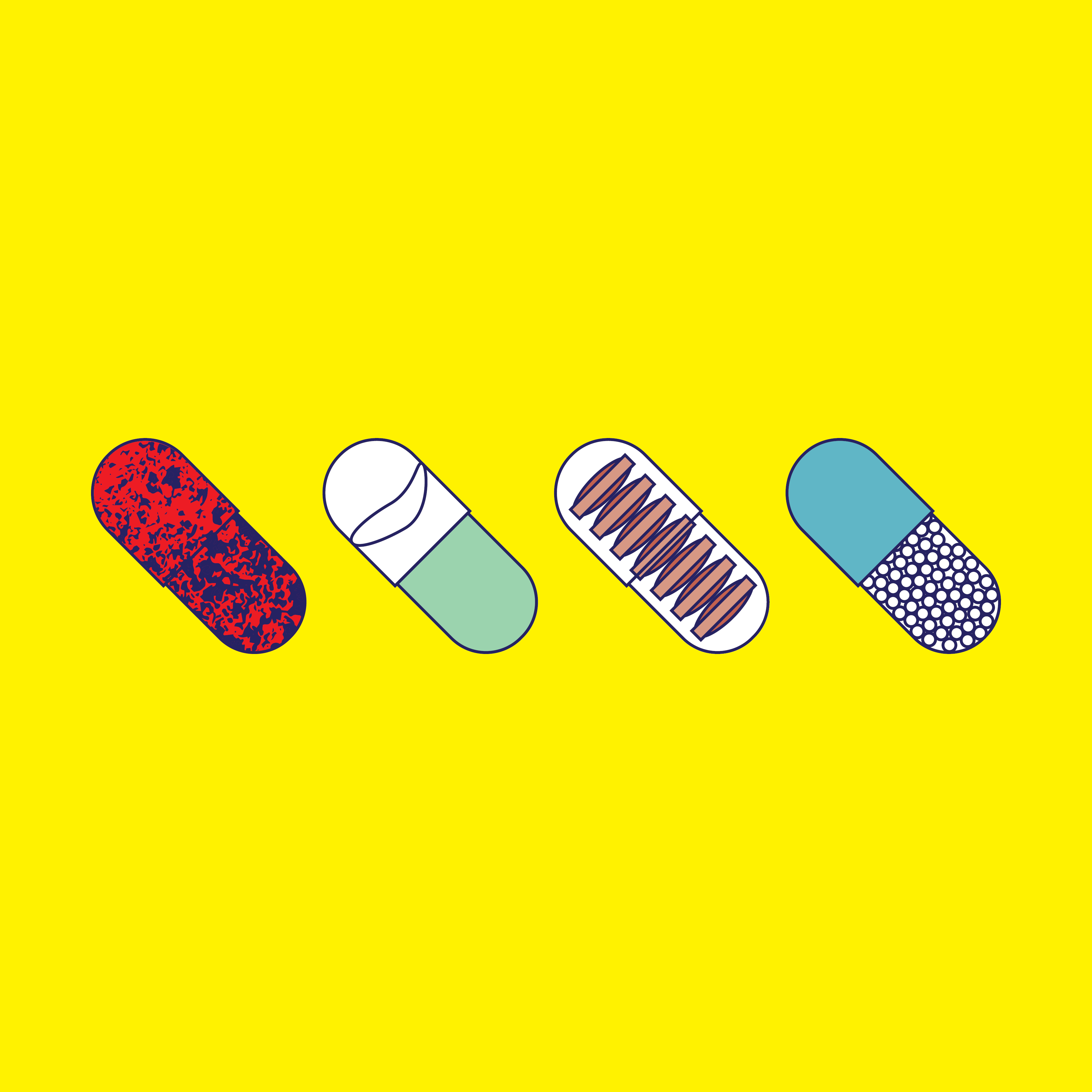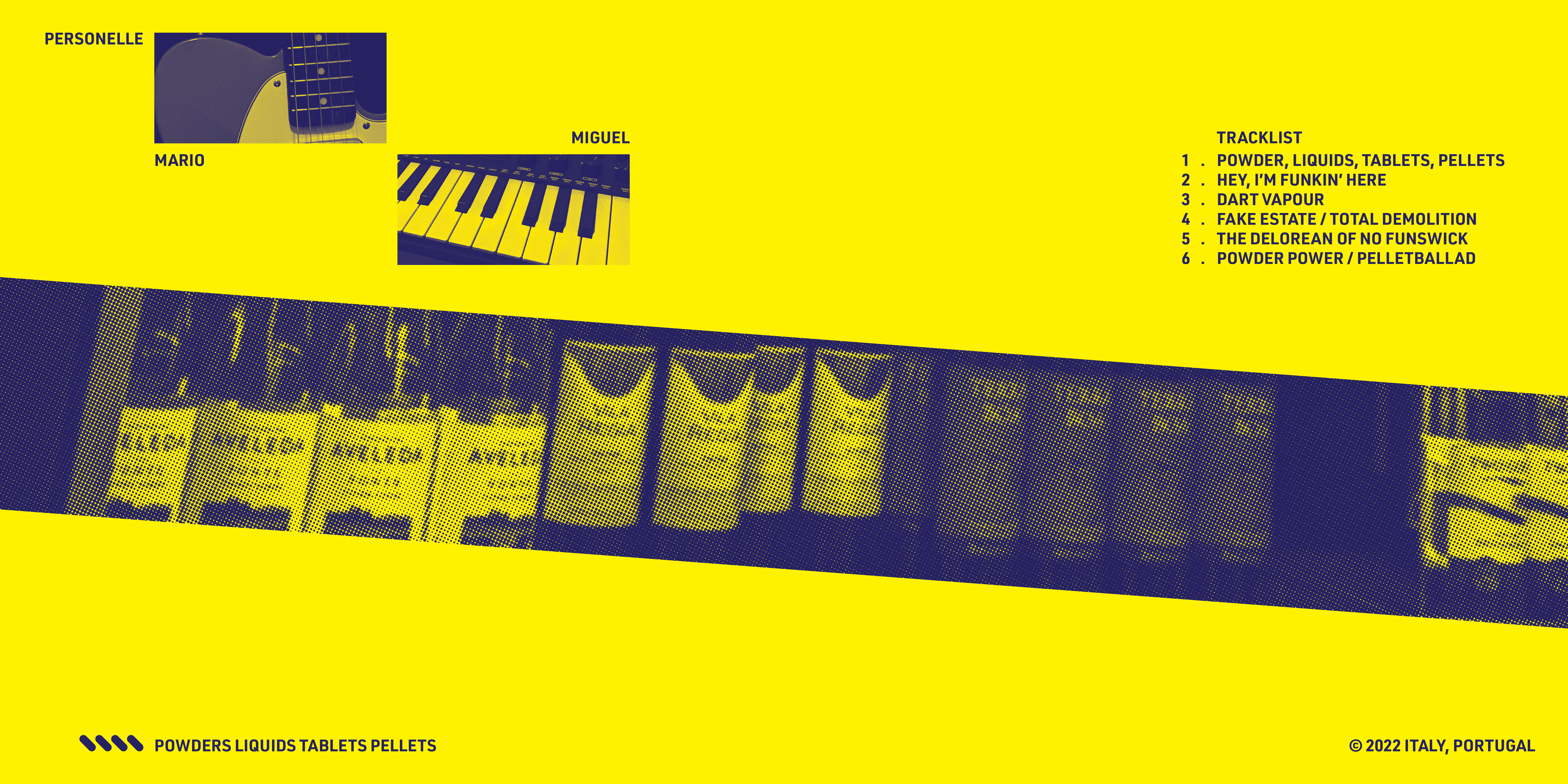 Vinyl sleeve design for musical duo Powders, Liquids, Tablets, Pellets.